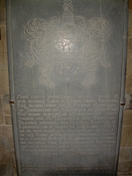 Here lyeth expecting the second comeing of our blesed Lord & saviour Henry Kingsmill Esq second sonn to Sir Henrry Kingsmill of Sidmonton in the county of Southampton whoe serving as a captain of foot under his Ma[jes]tie Charles the First of blessed memory was at the Battell of Edgehill in the year of our Lord 1642 as he was manfully fighting in bahlaf of his King & Country unhappily slaine by a cannon bullet, in memory of whom his mother the Lady Bridgett Kingsmill did in the forty sith yeare of her widowhood in the yeare of our Lord 1670 erect this monument.