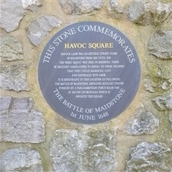 Havoc Square: Havock Lane was an historic street name in Maidstone from 1650 until 2003. The word 'havoc' was used in medieval times by military commanders to signal to their soldiers that they could massacre, loot, and generally run amok. It is significant in this location as following the Battle of Maidstone, defeated Royalist troops pursued by a Parliamentary force made for St Faiths churchyard which is opposite this square