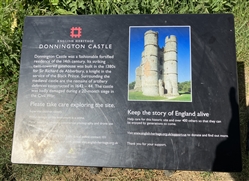 Donnington castle was a fashionable residence of the 14th century. Its striking twin towered gatehouse was built in the 1380s for Sir Richard de Adderbury, a knight in the service of the Black Prince. Surrounding the medieval castle are the remains of artillery defences constructed in 1643-44. the castle was badly damaged during a 20-month siege in the Civil War.