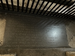 Further details on Rupert's coffin plate available from the Westminster Abbey website at https://www.westminster-abbey.org/abbey-commemorations/royals/prince-rupert-of-the-rhine. The preceding entry on the memorial stone is Elizabeth of Bohemia, Rupert's mother, hence the inscription concerning Rupert.