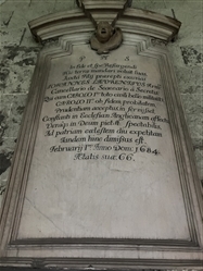 The inscription says that Laurence was secretary to the Chancellor of the Exchequer and fought for Charles I during the Civil War