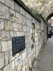 On 16th July 1644 the Royalists surrendered the City (after three months of siege) to the besieging Parliamentary forces at this point. The terms of surrender were generous and it was due to Ferdinando Fairfax and his son Thomas Fairfax, second and third Lords Fairfax of Cameron, that the City (and in particular the Minster glass) was preserved from destruction.