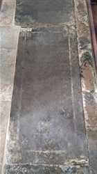 Its position in the church aisle means it has been heavily eroded by centuries of worshippers. Inscription is largely illegible.