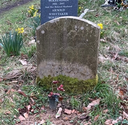 The headstone is discoloured and partly overgrown with lichen.