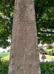 The celtic cross and plinth are in good condition but the inscription is badly weathered and is unreadable.