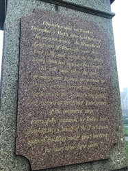 'Upon this spot on Sunday December 3rd 1643, after hard fighting for several hours, the Roundhead Garrison of Plymouth made their final rally and routed the Cavalier Army which had surprised the Outworks and well nigh taken the town. For many years it was the custom to celebrate the anniversary of this victory long known as the 'Sabbath day fight' and recorded as the 'Great Deliverance' of the protracted siege successfully sustained by Troops and Townsfolk on behalf of the Parliament against the King under great hardships for more than three years.'