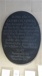 Although most of today's church (apart from the 15th century tower) dates from the 19th century, the church is famous for being the location of the Putney debates, the Council of War headed by Fairfax, Cromwell and Ireton in November 1647. It is said that the Cromwellian generals sate around the Communion table defiantly wearing their hats. A Cromwell Association plaque within the church commemorates the event. In November 1642, following the Battle of Turnham Green, the Parliamentarians constructed a bridge of boats across the Thames at Putney.