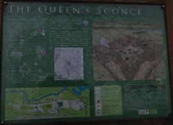 Located next to Queen's Sconce Civil War Trail panel to the left of the bridge leading onto the Sconce.