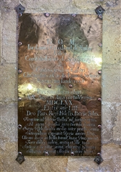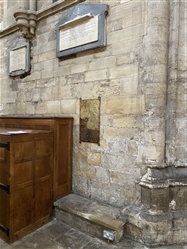 Wall mounted brass plaque in South Transept.