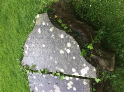 Badly weathered memorial in the churchyard, lettering wearing away. Observed 22 May 2022.