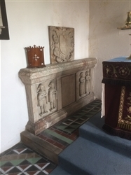 During the repairs of 1885 a slab came to light under the altar steps, on which was a brass plate recording that John, eldest son of John Milward, of Snitterton, married, for his second wife, Joyce, younger daughter of Henry Sacheverell of Morley, and died October 3rd, 1669. The rector removed the tablet, and had it fixed on a blank space which was left by the side of his mother’s inscription on the base of the large monument.