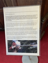 The hole in the Wainscot which appears thro the aperture of this plate was occasioned by a ball discharged from the musket of a Parliamentary soldier at King Charles the first while he sate dressing himself in this Projection. The ball was found and preserved during many years but is now lost. The Regiadal attempt seems to have been made on October 26 or 27 AD:1644.
