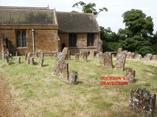 The monument in the churchyard at Warmington is an unusual survival, because it is a free standing gravestone. It commemorates Captain Gourdon, who died in the battle. It is hard to find amongst the many other excellent 17th and 18th century gravestones. It is however well worth the search, because such monuments from the Civil War are so rare. A photograph is provided here to help you to find it in the churchyard.