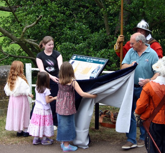 The Trust would like to thank the people of Cropredy for their enthusiastic support for the project, and Col. Pride's Regiment of the Sealed Knot for helping to make the unveiling such an enjoyable event. Thanks are also due to the various local authorities who are supporting the Trust in developing the Edgcote to Edgehill trail and, most importantly, the Local Heritage Initiative who have provided a substantial grant towards the costs of the project.