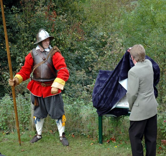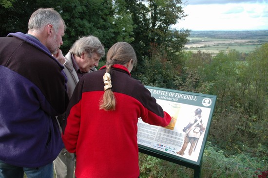 On the 23rd October 2005 The Battlefields Trust unveilled a new interpretation panel overlooking Edgehill battlefield. It is positioned in the garden of the Castle Inn, which gives stunning views out across the Vale of the Red Horse where the battlefield lies, between the villages of Radway and Kineton. Stand close to the site where, according to local tradition, King Charles I himself stood with his major commanders to view the field as the parliament army marched out of Kineton and deployed in what then were open fields between the two villages.
