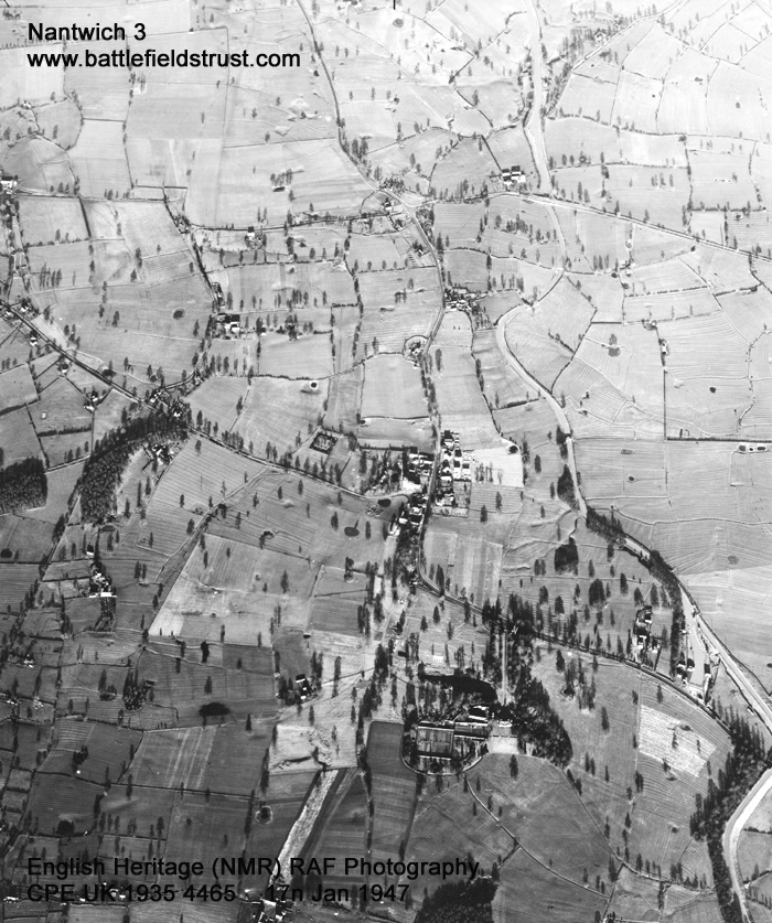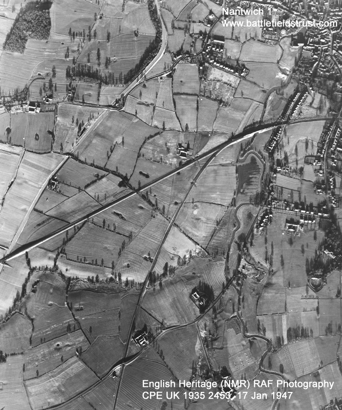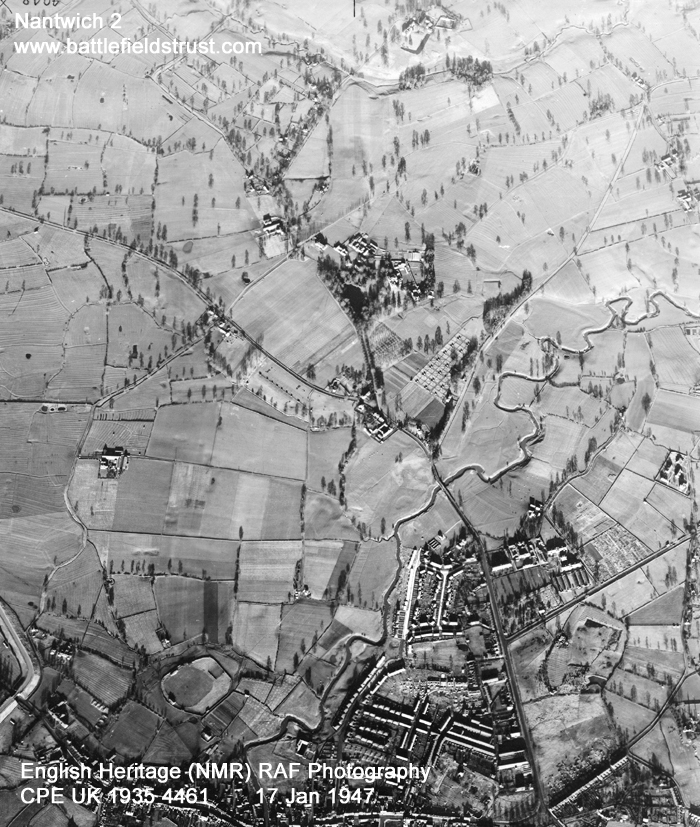 The battlefield remains largely enclosed pasture, as it was in 1644. The pattern of hedgerows today is very similar to that in 19th century, though with some loss, but it is uncertain which, if any of these survive from the time of the battle. The area of action where the garrison broke out in support of Fairfax is being encroached upon by development on the edge of the town, while the Shropshire union canal has cut across the very heart of the battlefield. However, whilst the latter is an intrusion into the landscape, it does provide a pleasant walk and, with other rights of way, enables good access to the battlefield by foot. The canal bridge at Acton provides a particularly fine view of the battlefield.