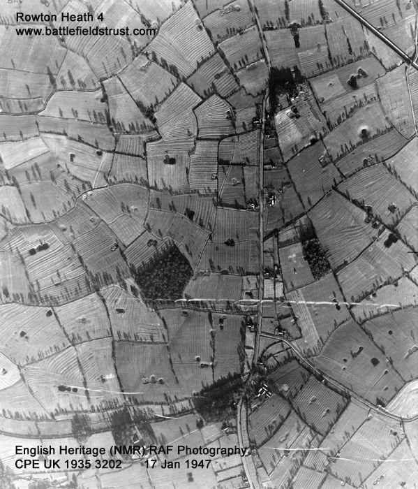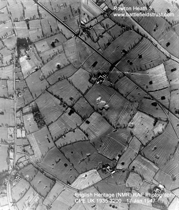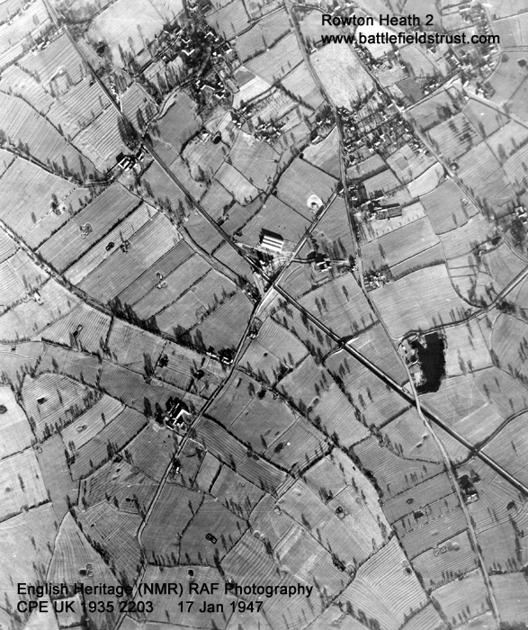 The battle of Rowton Heath occurred in three stages and covered a very wide area. The site of the initial stage of action is the best preserved and survives as largely undeveloped agricultural land, though it is bisected by a railway line and partly disturbed by a small area of quarrying. Unfortunately the quarry is located on the possible site of the initial royalist deployments, thus probably having destroyed elements of the battle archaeology. Whitchurch Road (A41), the ‘narrow lane’ in which the fierce first engagement occurred, remains largely on its original course but has been widened and realigned in part. There is a footpath along the roadside allowing the visitor to follow the course of the initial parliamentarian advance and engagement and access to the abandoned original road is possible. Footpaths also allow access to the fields on either side of the road.