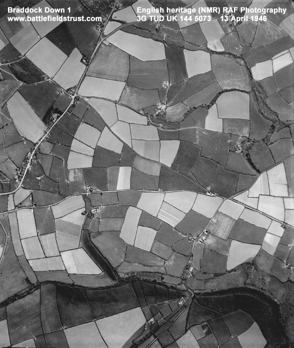The English Heritage site for the battlefield is now fully enclosed and is largely arable land. The traditional site is partly within the parkland of Boconnoc, partly under pasture. Although the Down was wholly open common grazing land at the time of the battle, the land to the west around Braddock church appears already to have been enclosed by 1643; there one can see examples of the typical Cornish hedges, stone faced banks surmounted by hedges, that bounded such enclosures in the 17th century.