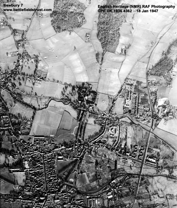 Newbury is one of the major battles of the war where there is real uncertainty about the detailed placing of the action within the landscape. The interpretation that is given here, and all of the existing studies of the battle must remain in doubt until there is a major new study of the battlefield. Yet this work must be done soon, for Newbury seems to be one of the most threatened of English battlefields. Already much of the south eastern periphery of the battlefield is extensively built over, with only a small area of Wash Common remaining undeveloped, to the east of Wash Common Farm. In the north east there has also been considerable development, with modern housing on the edge of Newbury continuing to encroach upon the battlefield. However the ground upon which most of the action probably took place remains largely agricultural. Across the northern edge of the battlefield however the Kennet and Avon canal was cut in the 18th century and then in the late 20th century, and far more destructive, the A34 Newbury bypass was constructed from north to south across the field, though probably largely to the rear of the parliamentarian positions.