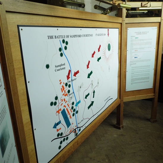 After marching the 7 miles from Exeter to Crediton on 16 August, Russell approached North Tawton on the 17th, where one of the rebel commanders, Maunder, was reportedly captured in a skirmish between opposing scouting parties. The following day, the loyalists commenced their attack on the insurgents, who had dispersed their forces between the village of Sampford Courtenay itself, a fortified hilltop camp to the north east, and an ambush party concealed amidst the fields in between. Despite the insurgents’ skillful deployment, which made effective use of their comparatively small force, the numerical disparity with Russell’s far larger army meant that the battle was a relatively brief affair.