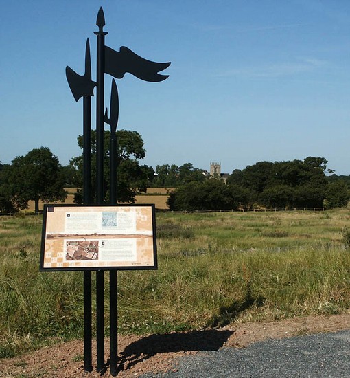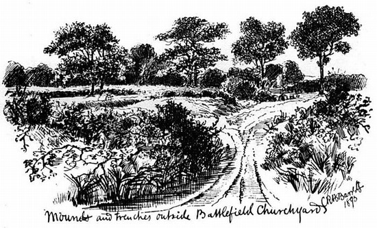 Location: securely located in the fields west of St Mary Magdalene's church, Battlefield and fought over open ?arable / ?pasture terrain