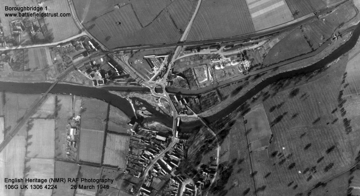 The action was fought for control of a narrow bridge and a nearby ford by which the Great North Road crossed the River Ure. Today the battlefield has been largely engulfed by the town, but in 1322 Boroughbridge had probably not yet extended as far north as the bridge. The land on either side of the river will have been floodplain meadow. But, while the bridge was probably very close to its present site, it is uncertain exactly where the ford lay, making it difficult to appreciate exactly how all the forces were deployed and where they fought.