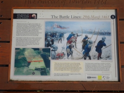 The information boards at Towton Battlefield follow the traditional narrative of the battle. This largely follows the account of the Tudor chronicler Edward Hall with embellishments by 19th-century historians like Thomas Dunham Whitaker and Alexander Leadman. The battle interpretation is not corroborated by the 15th-century accounts (David Grummmitt, The Wars of the Roses; Volume 1, 1455-1461, The Triumph of York (Helion & Co, 2025)).
