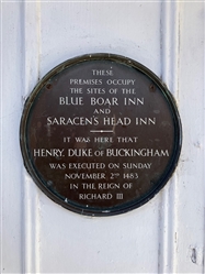 These premises occupy the sites of the Blue Board Inn and Saracen's Head Inn. It was here that henry, Duke of Buckingham was executed on Sunday November 2nd 1483 in the reign of Richard III