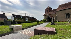 A stone sculpture in the form of two seats opposite one another engraved with the above inscription and white and read roses. This is one of the sculptures that forms the Bosworth 1485 Sculpture Trail. Images kindly provided by Leicestershire Promotions Limited and used with permission.