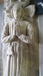(Upper edge) Hic jacet Thomas White, quondam mercator ac istius villae major, qui obiit viiio die maii A. D. Millessimo CCCCLXXXII. Cuius animae propitietur Deus.