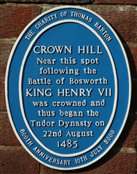 Crown Hill Near this spot following the Battle of Bosworth KING HENRY VII was crowned and thus began the Tudor dynasty on 22nd August 1485